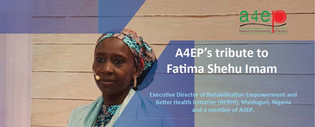 Fatima was actively engaged with A4EP since its early days and served as a member of the International Convening Committee. She was a powerful advocate and spokesperson for localisation. She represented A4EP as the Sherpa of the Grand Bargain and played a vital role in the facilitation group and in co-moderating sessions at the annual meeting, bringing in her own fabulous dress style, humility and humour and left a lasting impression on the GB family and the Ambassadors, proving that local actors have the capability if they are given the space and voice. During